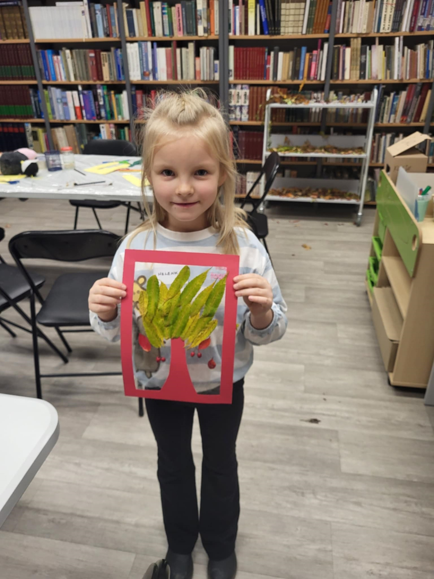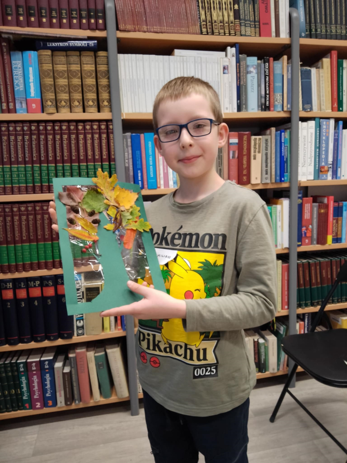 Wczoraj w bibliotece zrobiło się naprawdę magicznie! Podczas zajęć literacko-plastycznych „Jesienne bajanie” dzieci przeniosły się do świata książki „Złodziej liści”. Razem odkrywaliśmy jesienne tajemnice, szukaliśmy wśród regałów ukrytych zwierzątek – myszki, dzięcioła, ptaszka i wiewiórki , a także próbowaliśmy swoich sił w „ćwiczeniach wiewiórki” – z oddechem i równowagą na jednej nodze! Na zakończenie każdy uczestnik stworzył własny, kolorowy witraż drzewka z liśćmi, który przypomniał nam, że jesień potrafi być naprawdę piękna. Dziękujemy wszystkim małym artystom za wspólną zabawę, uśmiech i ciepłą atmosferę!