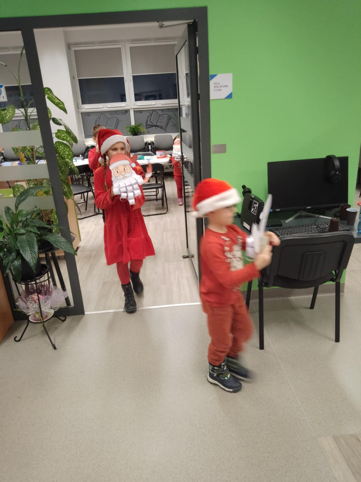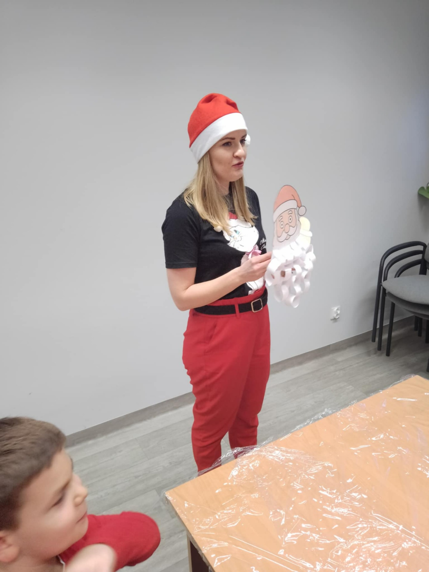 W programie warsztatów znalazły się również zabawy ruchowe oparte na naśladowaniu, a także zespołowe poszukiwania zagubionego worka Świętego Mikołaja. Zajęcia łączyły elementy literatury, twórczości plastycznej oraz aktywności ruchowej, sprzyjając integracji i wspólnej zabawie.