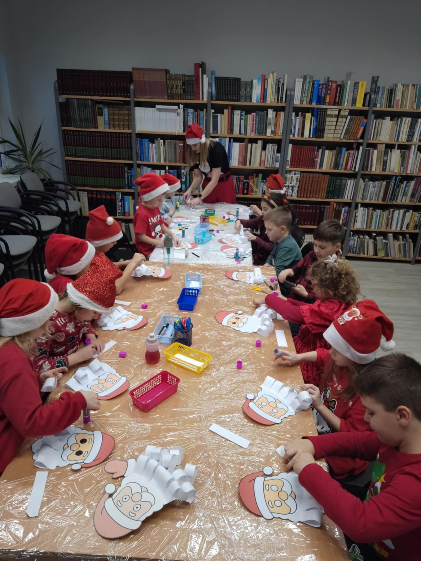 W dniu 16 grudnia 2025 roku w bibliotece odbyły się świąteczne warsztaty pt. „Fabryka Świętego Mikołaja – tworzenie i czytanie”. Motywem przewodnim spotkania były słowa „Ciche ho, ho, ho”, które wprowadziły uczestników w atmosferę świątecznej ciszy, uważności i oczekiwania.